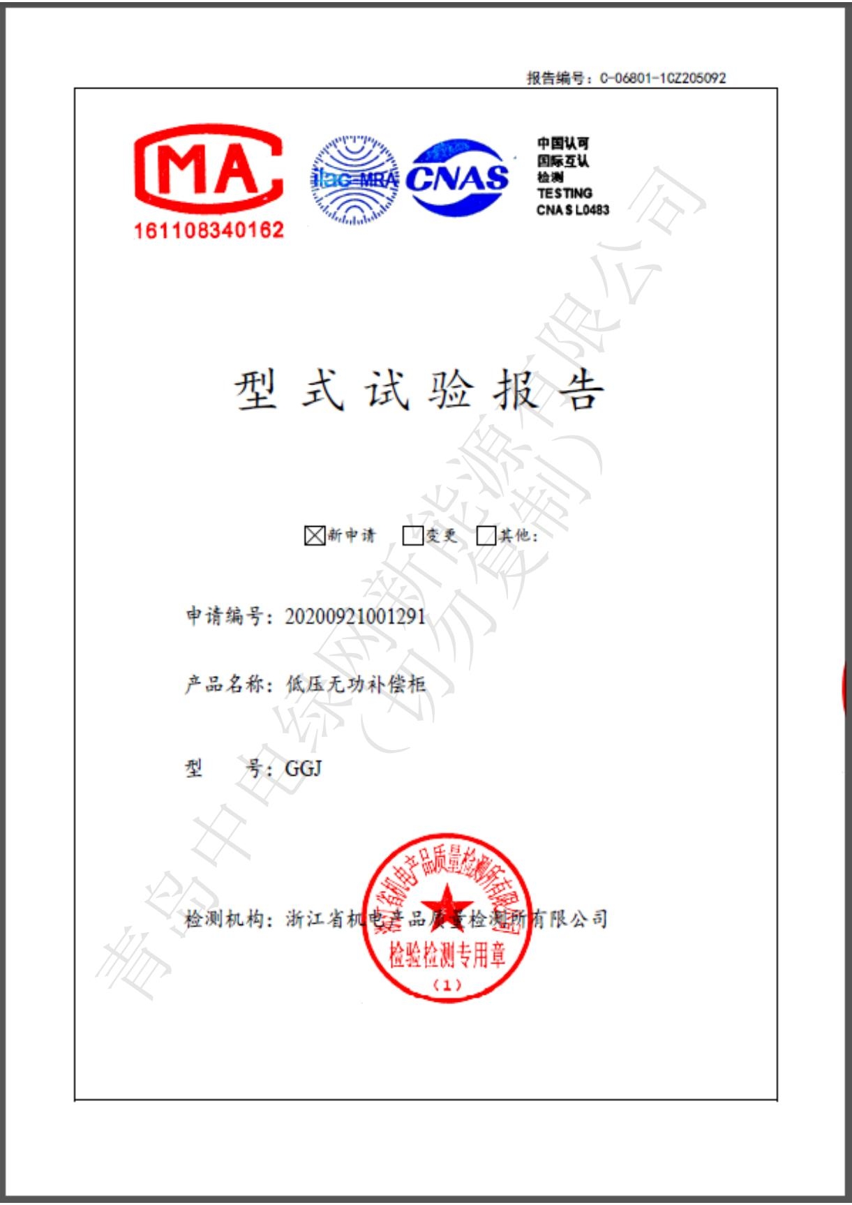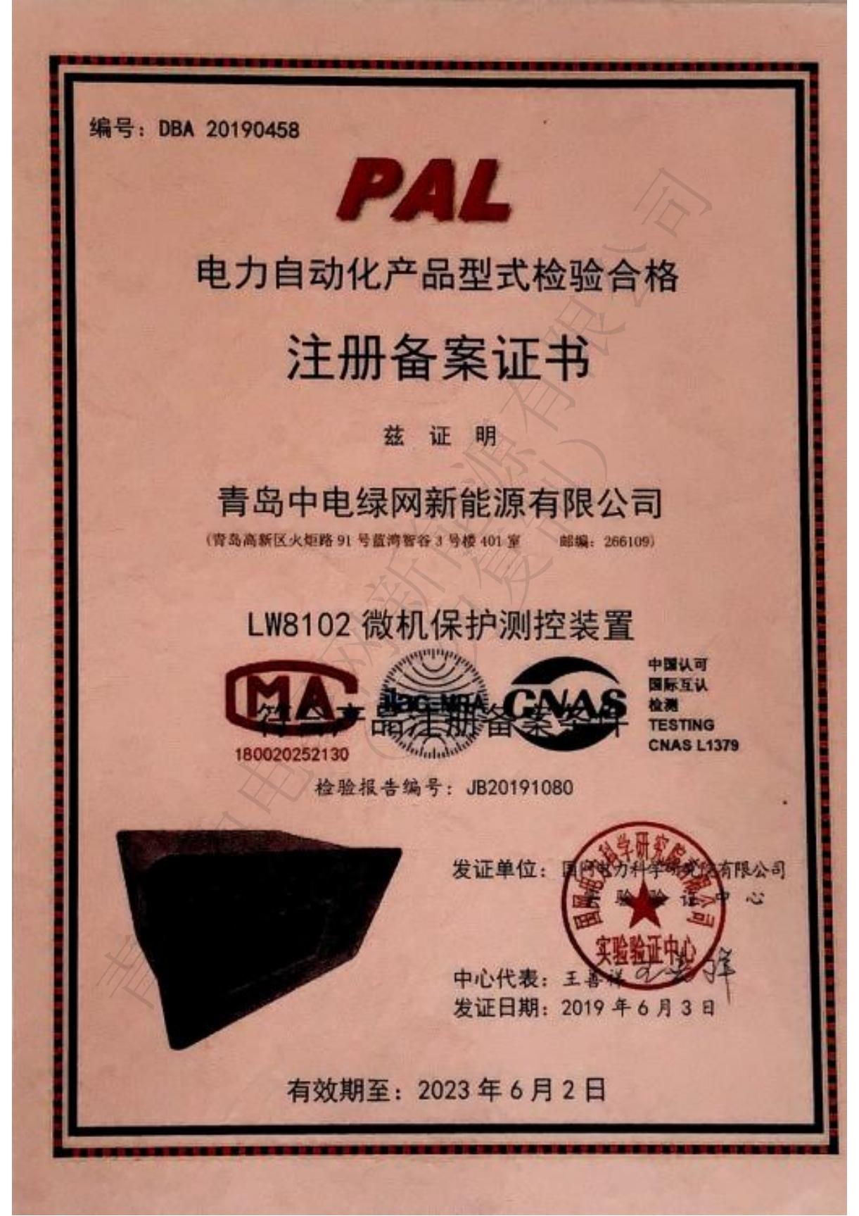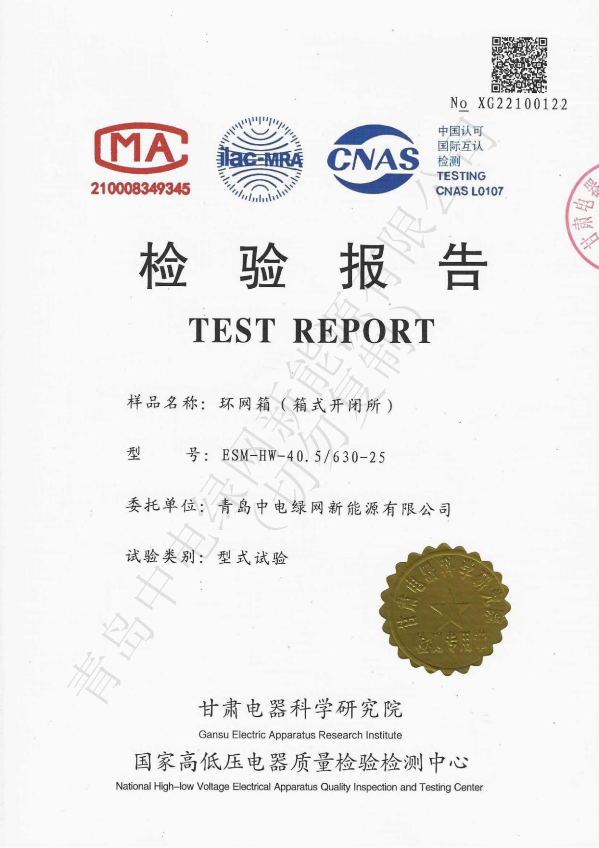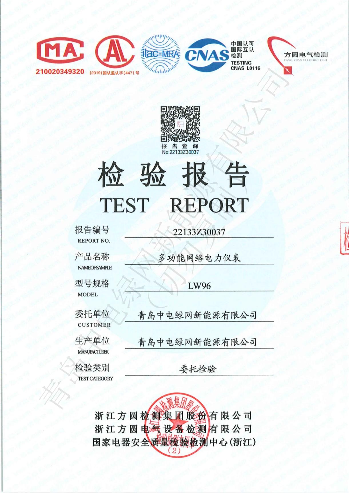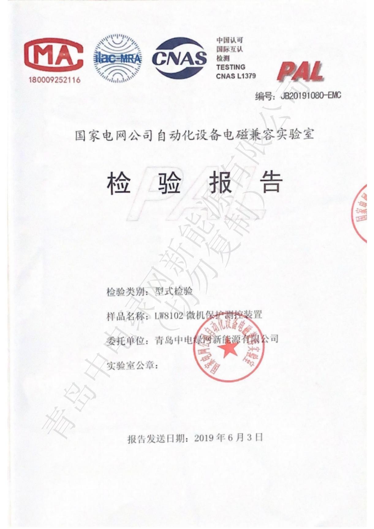 產(chǎn)品測試證書