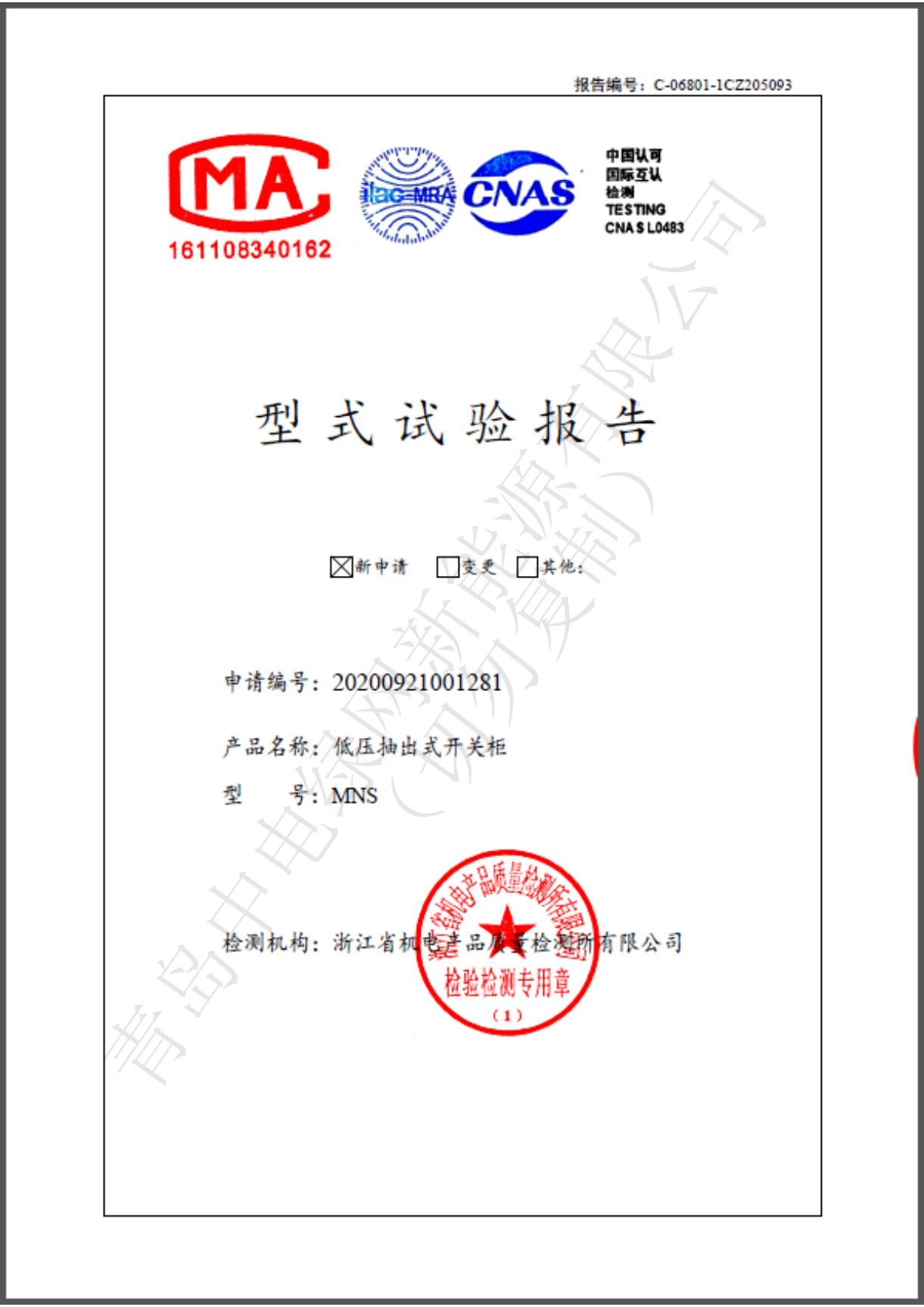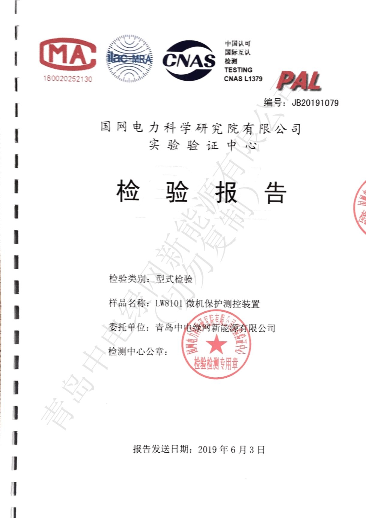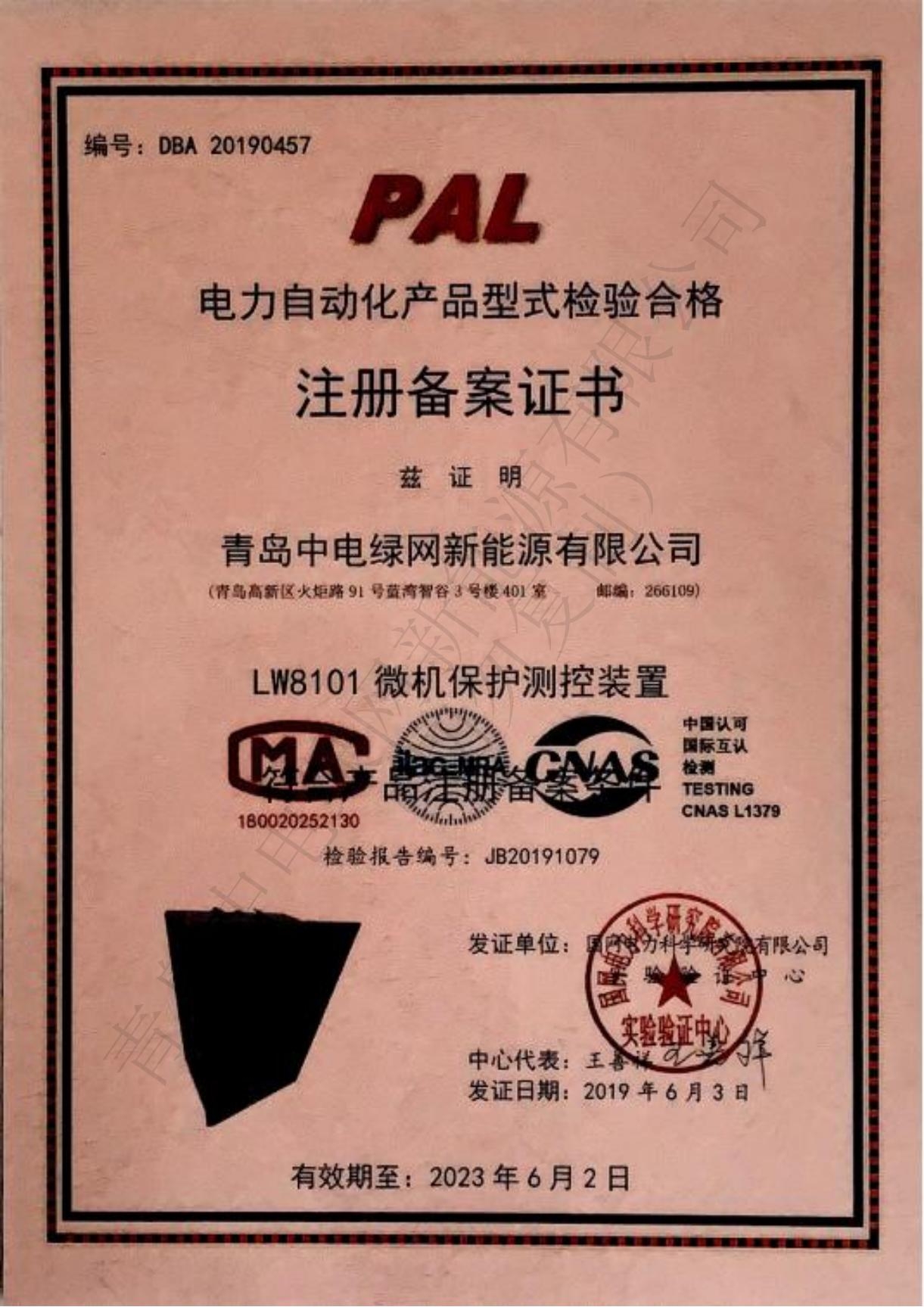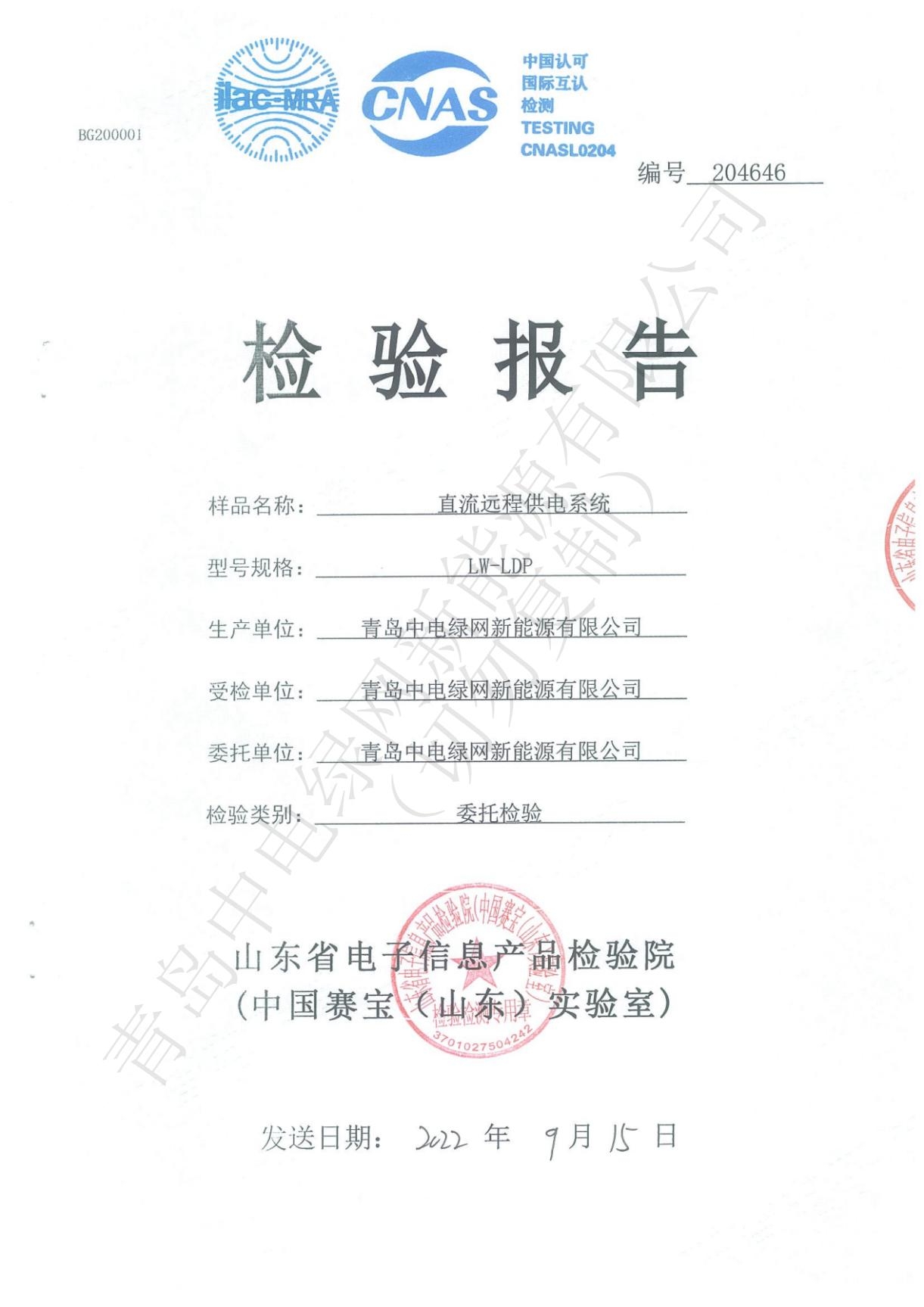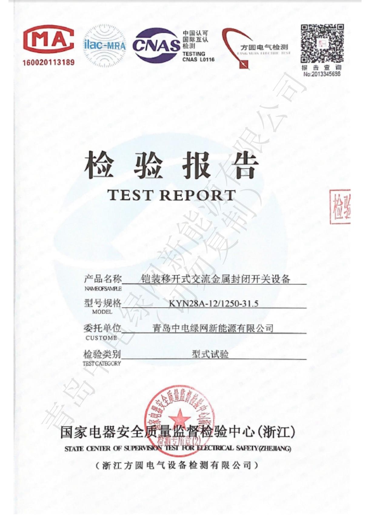 產(chǎn)品測試證書