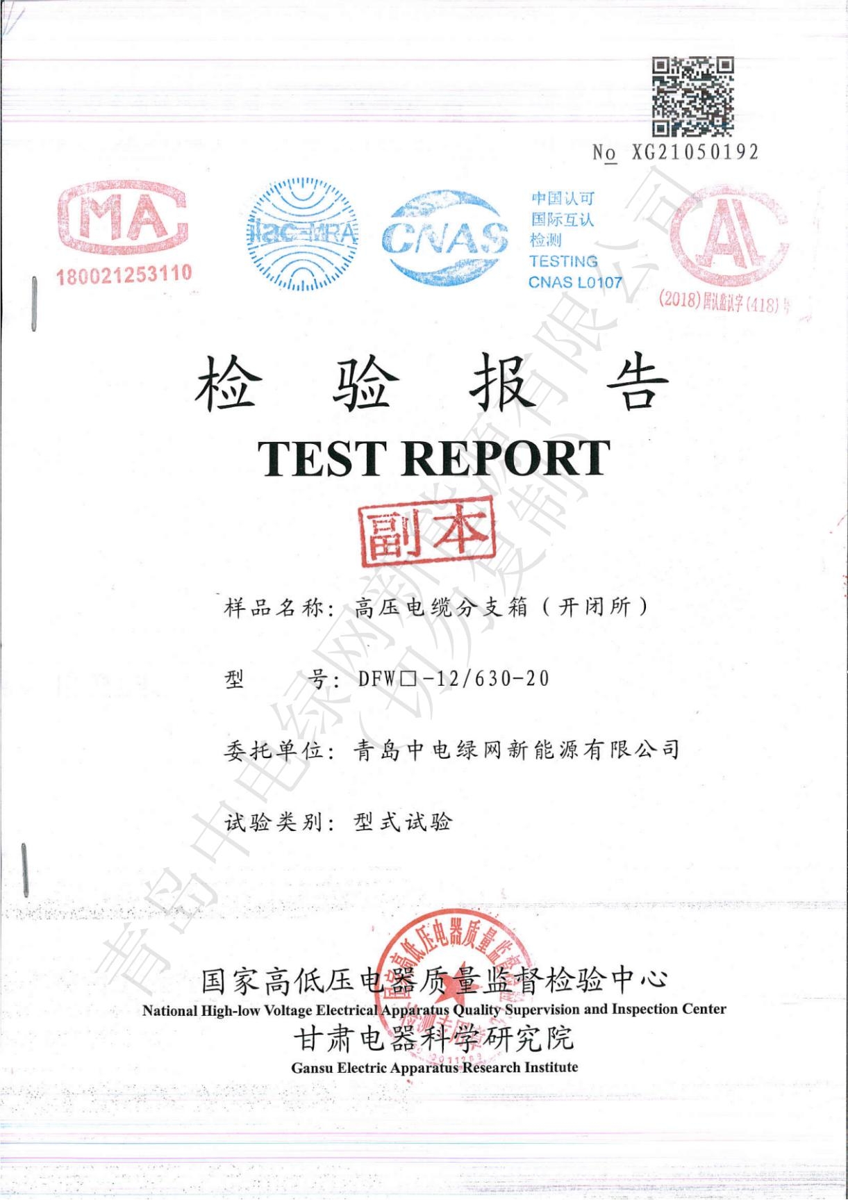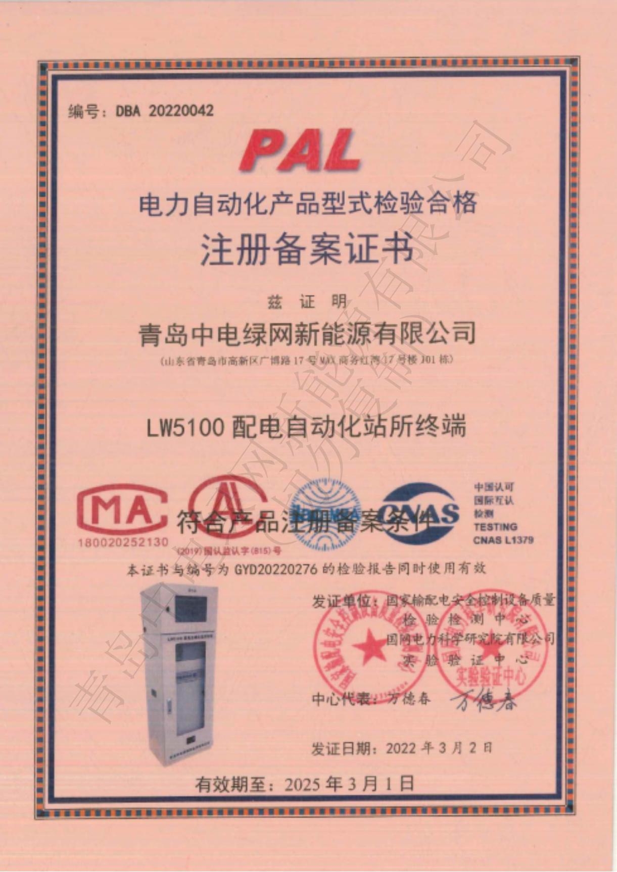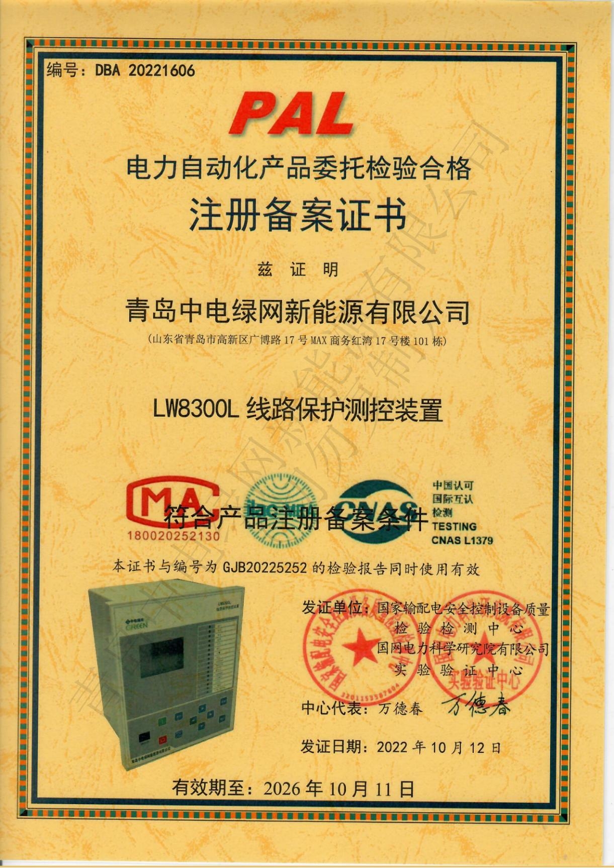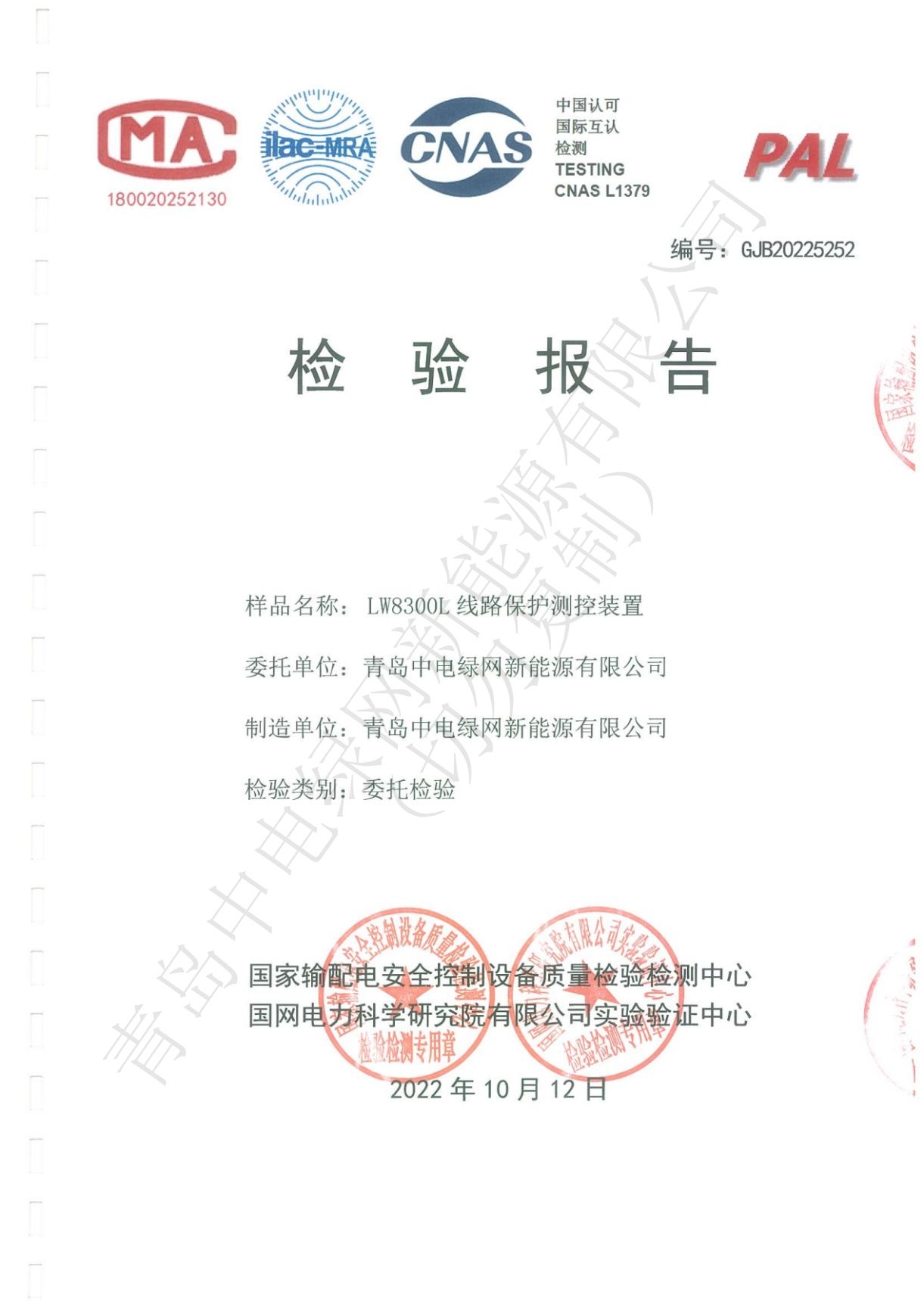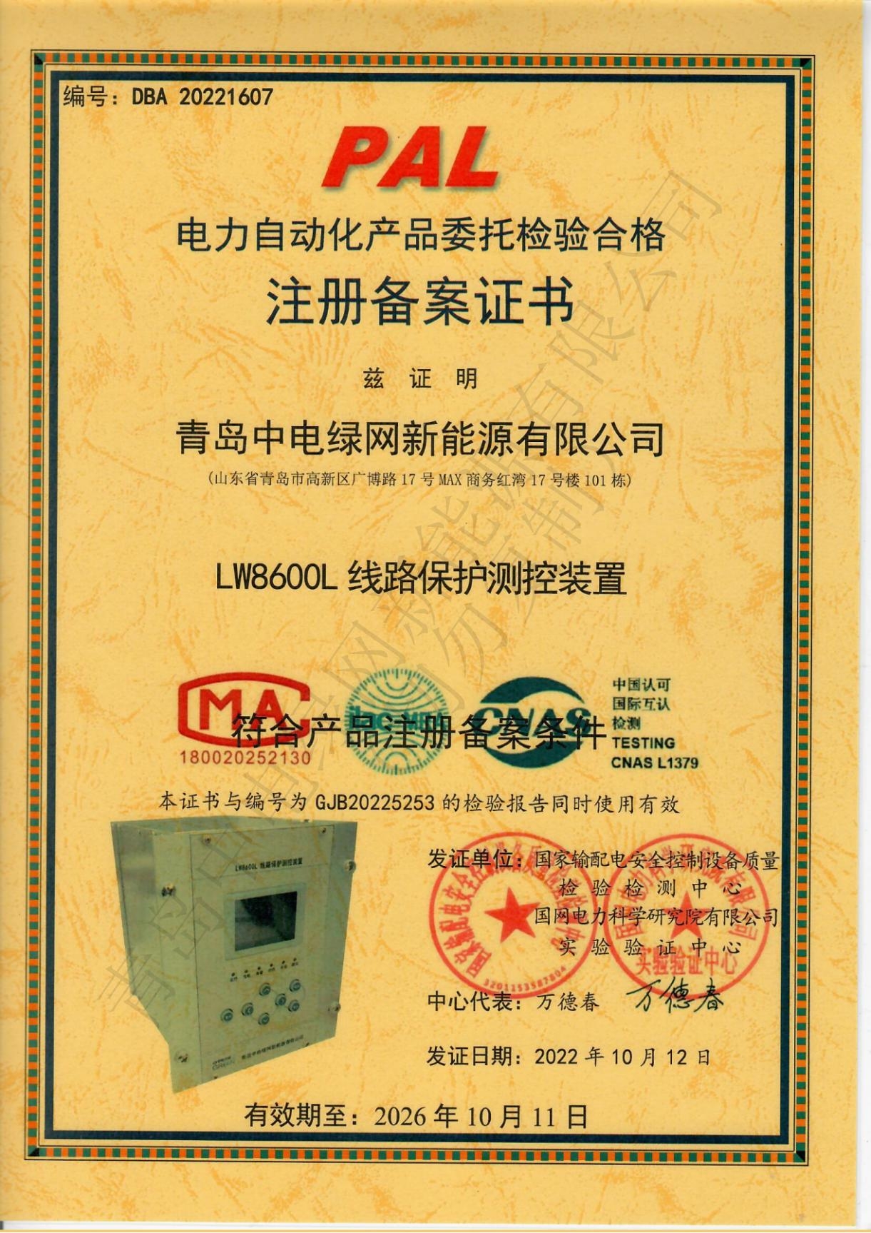 產(chǎn)品測試證書